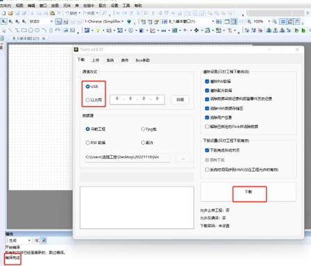 1.觸摸屏接通電源,軟件內(nèi)點擊“下載”,等待編譯完成