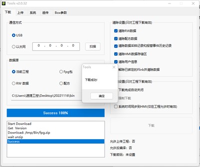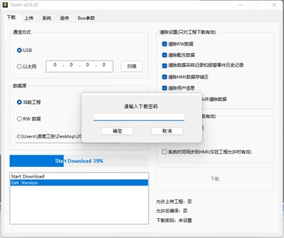 3、選擇工程下載方式,USB 或者網(wǎng)絡(luò),確認下載,如果提示“通訊失敗”,請檢查下載線連接是否 正常(USB 線或者網(wǎng)線),如果提示“啟動下位機失敗”,可以先斷電,讓 HMI 重啟,再次嘗試。(百度一下速捷工控)