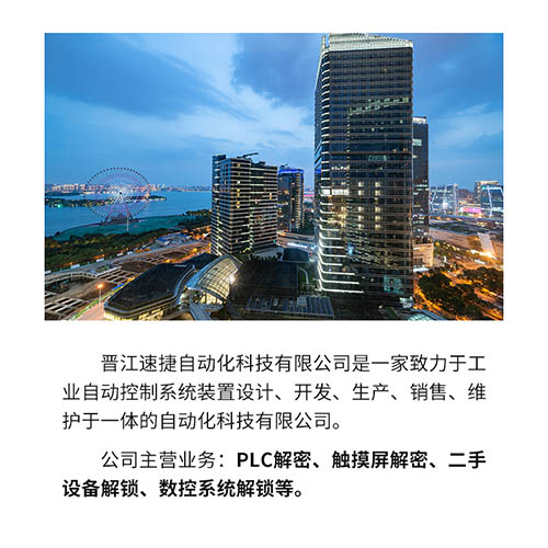 晉江速捷自動(dòng)化科技有限公司 總部地址:福建省晉江市安海汽車站旁 PLC解密電話:15059791632 觸摸屏解鎖咨詢:15059791632
